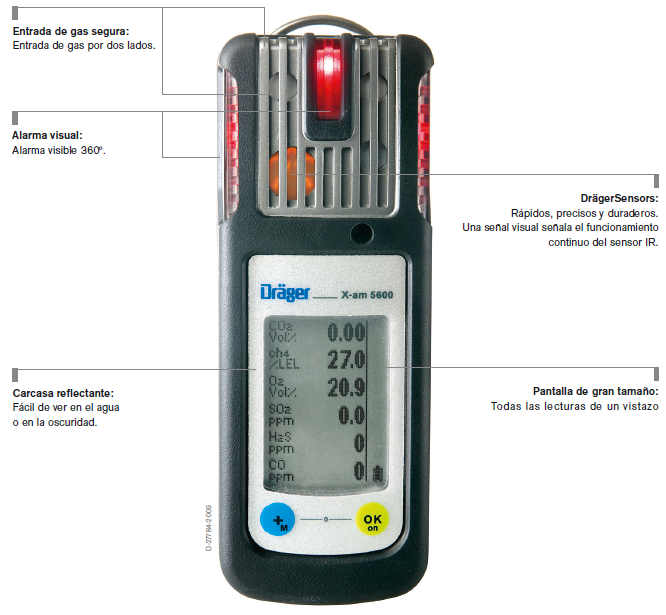 sensor infrarrojo IR, el Dräger X-am® 5600 es el instrumento de detección